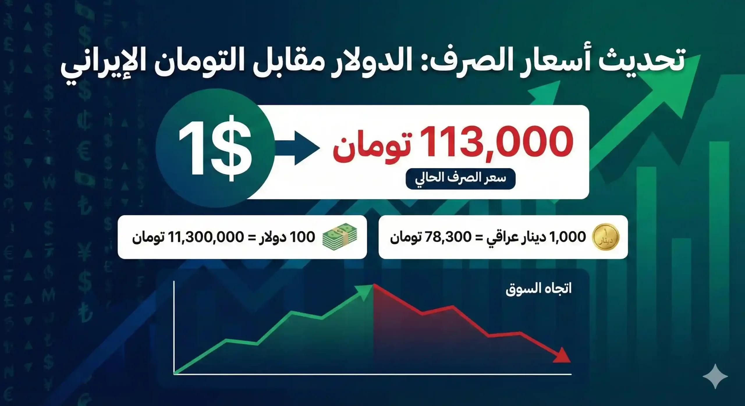 ​سجل سعر صرف الدولار الأمريكي قفزة نوعية ومرعبة في السوق الموازية حيث تم تداول كل 1 دولار أمريكي مقابل 113.000 تومان إيراني ويعد هذا الرقم سابقة تاريخية لم تشهدها الأسواق من قبل مما يعكس حجم الضغط الهائل على الاقتصاد المحلي ونفاد احتياطيات العملة الصعبة وعجز السياسات النقدية عن كبح جماح هذا الصعود الصاروخي للعملة الخضراء التي باتت تتحكم في مفاصل الأسعار بشكل كلي.